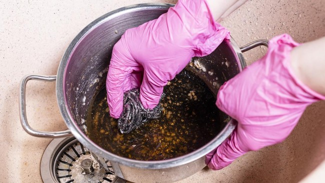 Membersihkan panci yang gosong memerlukan cara-cara khusus, salah satunya menggunakan air panas yang dicampur dengan sabun pencuci piring, seperti dikutip dari laman Taste of Home.