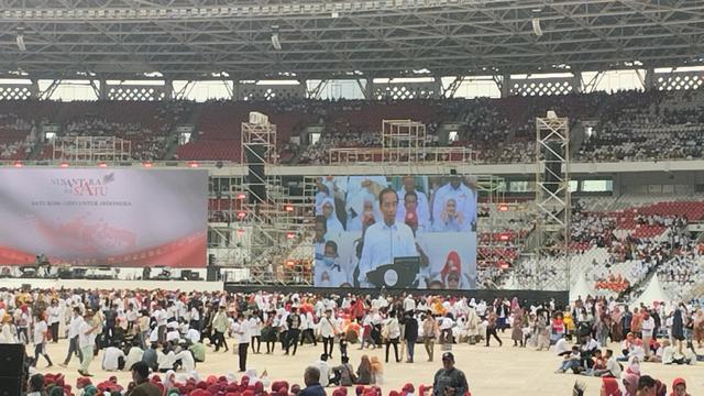 Relawan Presiden Joko Widodo atau Jokowi mulai memadati Stadion Gelora Bung Karno (GBK), Sabtu (26/11/2022) pagi. Diketahui mereka bakal menggelar acara bertema ‘Nusantara Bersatu’.