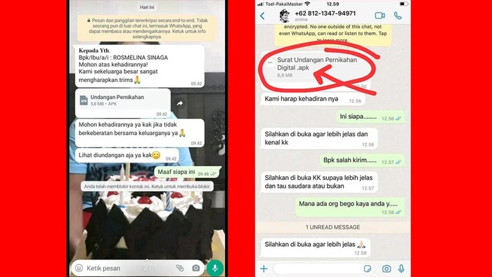 Mereka mengirimkan surat undangan pernikahan yang sebenarnya mengandung APK dari luar Play Store. Begitu diinstall akan mencuri kredensial OTP dari perangkat korbannya.