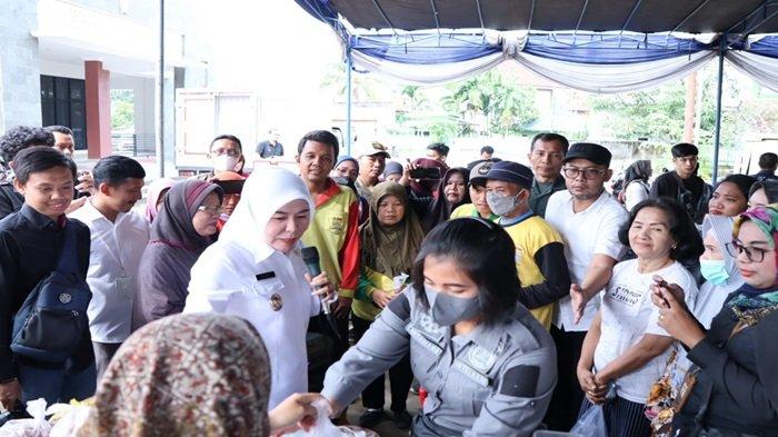Tidak hanya warga masyarakat biasa, anggota TNI, Polri, Sat Pol PP, hingga petugas kebersihan juga terlihat mendapatkan telur dari Wakil Walikota Palembang di kunjungannya pada bazar tersebut.