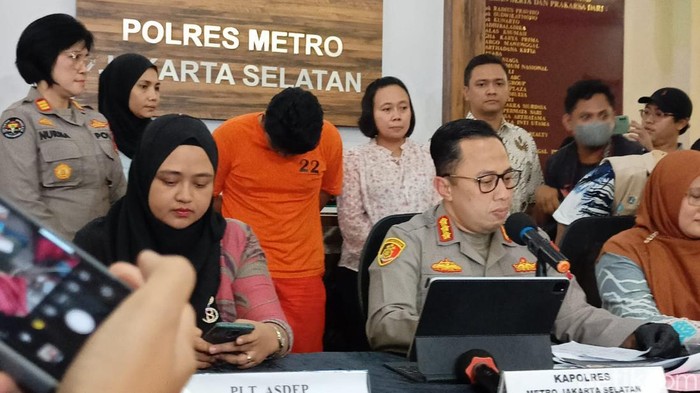 Pantauan detikcom di Mapolres Metro Jakarta Selatan, Jumat (24/2/2023), Shane dipamerkan sesaat sebelum Kapolres Metro Jakarta Selatan Kombes Ade Ary Syam Indradi mengawali jumpa pers terkait kasus penganiayaan terhadap David.