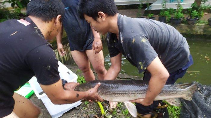 Pria berbada kekar tersebut mengungkapkan, ikan predator yang ada di kolam tersebut mencapai ukuran 1,5 meter dengan bobot lebih dari 10 kilo gram.