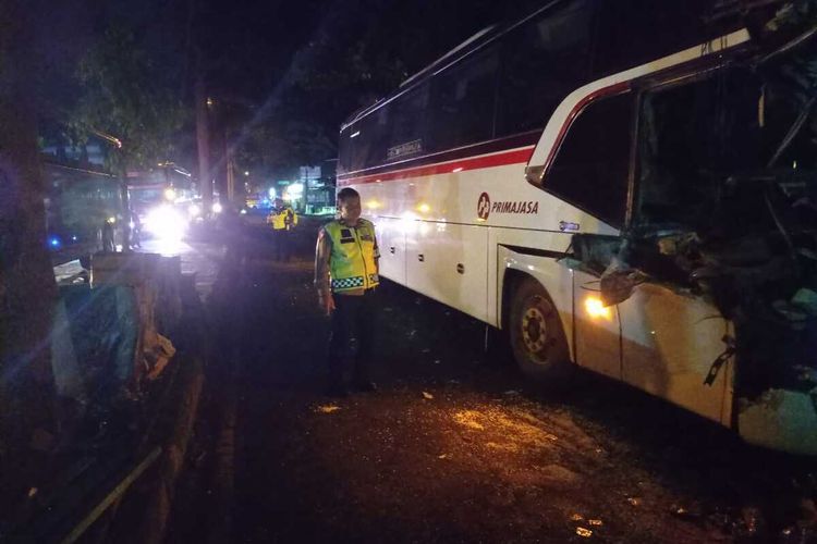 TASIKMALAYA, KOMPAS.com – Bus Primajasa bernomor polisi B 7538 FGA jurusan Tasikmalaya-Cililitan menyeruduk bagian belakang truk tronton pengangkut mi instan di jalan dua jalur Letnan Harun, Kota Tasikmalaya, Jawa Barat, Rabu (2/111/2022) pagi.