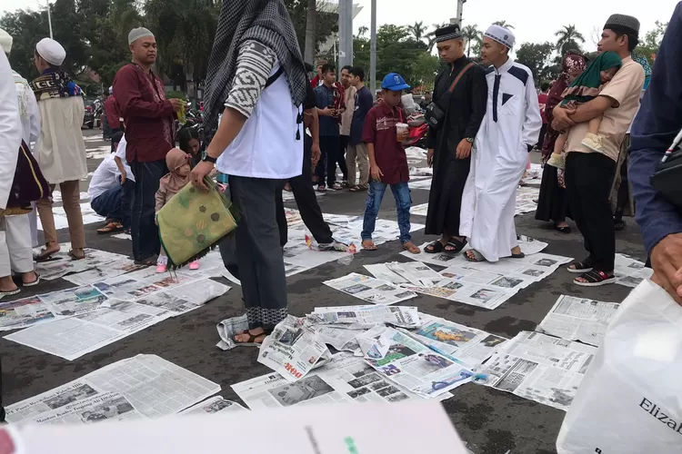Pantauan detiksumsel.com banyak koran bekas berhamburan di jalan Sudirman, Faqih Jalaluddin, jembatan Ampera dan jalan Merdeka berubah menjadi lautan koran bekas alas jamaah usai.