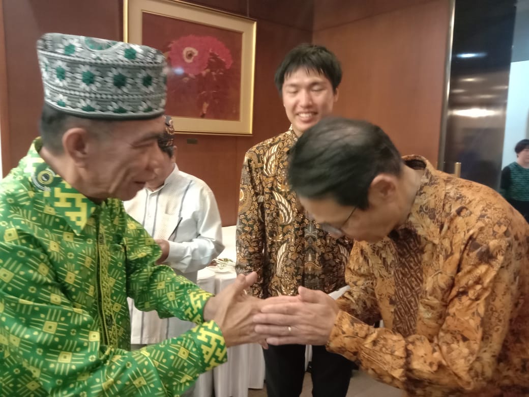 KH Mudrik Qori disambut langsung oleh Dubes Kanasugi Kenji di dampingi Direktur Politik Tanaka Motoyasu dan Reseacher Izawa Tomomi, beserta jajaran dengan sangat ramah dan penuh keakraban.