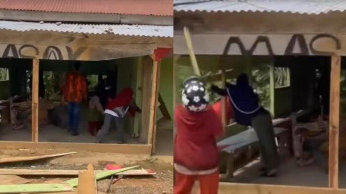 Terlihat dalam video tersebut ibu-ibu itu tampak membongkar paksa bangunan warung yang terbuat dari papan sambil melontarkan kata-kata dengan nada kekesalan.