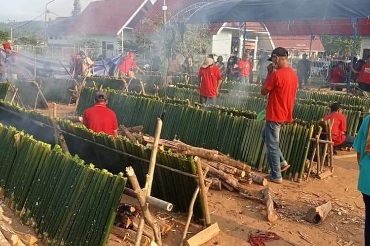 Ada pun bahan yang disiapkan dalam proses pembuatan nasi bambu tersebut terdiri dari beras ketan, santan kelapa, garam, bawang merah, daun pandan.