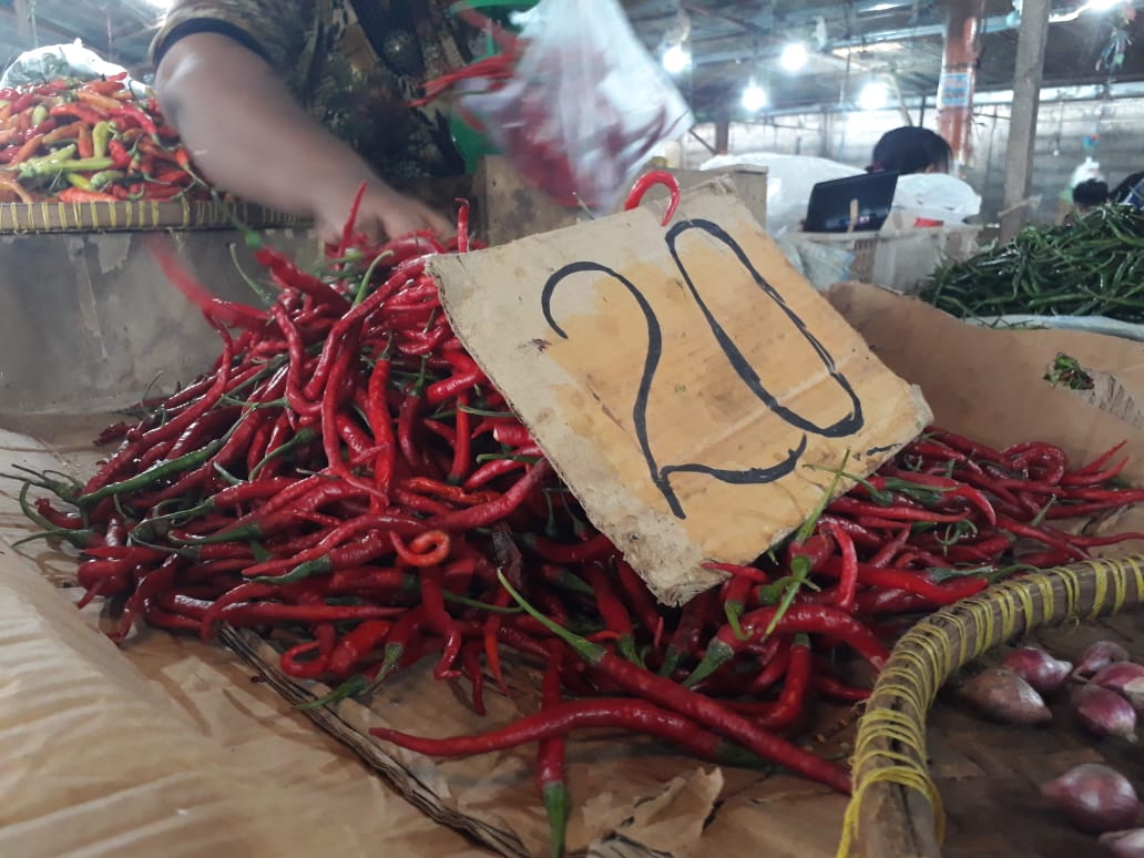 Untuk cabai burung turun menjadi Rp28 ribu dan cabai hijau Rp18 ribu per kilogram. Tidak hanya itu, harga bawang juga mengalami penurunan, bawang putih Rp36 ribu pada kemarin masih di harga Rp40 ribu dan bawang merah 48 ribu sebelumnya Rp50 ribu.