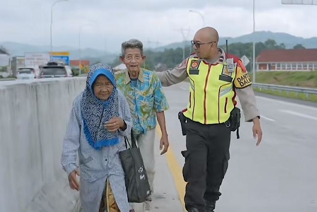Diketahui, pasangan Lansia ini kedapatan petugas polisi sedang berjalan tertatih-tatih melintasi jalur tol Cisumdawu yang kondisinya sedang ramai.