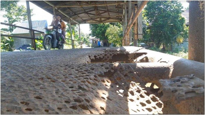 “Selain lubang-lubang besar, plat lantai jembatan ini kelihatan seakan tipis karena banyak lubang-lubang kecil dan kalau diperhatikan seperti jaring bibit ikan. Bahaya ini,” kata Frans, seorang warga setempat, Jumat (7/4/2023).