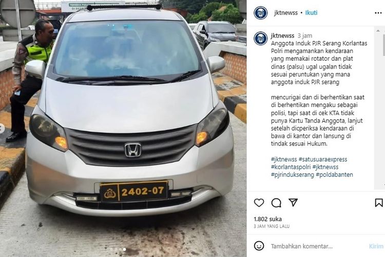 Kepala Induk PJR Serang Timur Kompol Wiratno mengatakan, kendaraan Honda Freed diamankan saat petugas patroli mencurigai kendaraan yang menggunakan pelat nomor Polri, rotator dan sirine di KM 40 arah Jakarta.