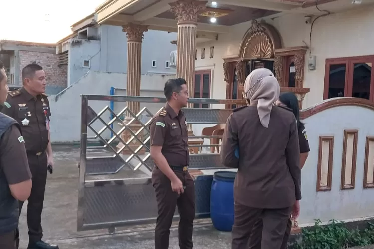 Kasi Pidsus Kejari Ogan Ilir Julindra Purnama Jaya memimpin pemeriksaan di rumah Idris di Desa Tanjung Seteko, Kecamatan Indralaya.
