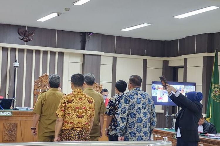Empat terdakwa yang menjalani sidang dari rutan KPK di Jakarta tersebut masing-masing Penjabat Sekda Pemalang Slamet Masduki, Kepala BPBD Pemalang Sugiyanto, Kepala Dinas Kominfo Pemalang Yanuarius Natbani, serta Kepala Dinas PUPR Pemalang Muhammad Saleh.