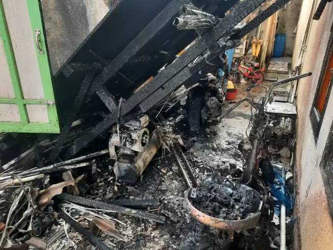 “Api sendiri berasal arus pendek dari rumah tetangga korban, sehingga berakibat rumah korban terbakar sedikit, dua motor dan mesin kompresor terbakar,” tutupnya singkat.