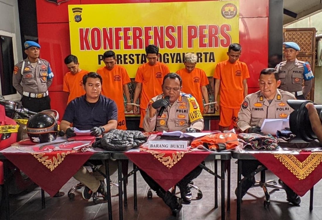 – Enam pelaku kejahatan jalanan di Titik Nol Kilometer, pada Selasa (07/02/2023) akhirnya ditangkap. FN (28), YG (33), LT (23), TR (27), NK (20) dan GN (17) ditangkap Kamis, (9/2/2023) pukul 12.30 WIB di SPBU Wangon, Banyumas, Jawa Tengah.