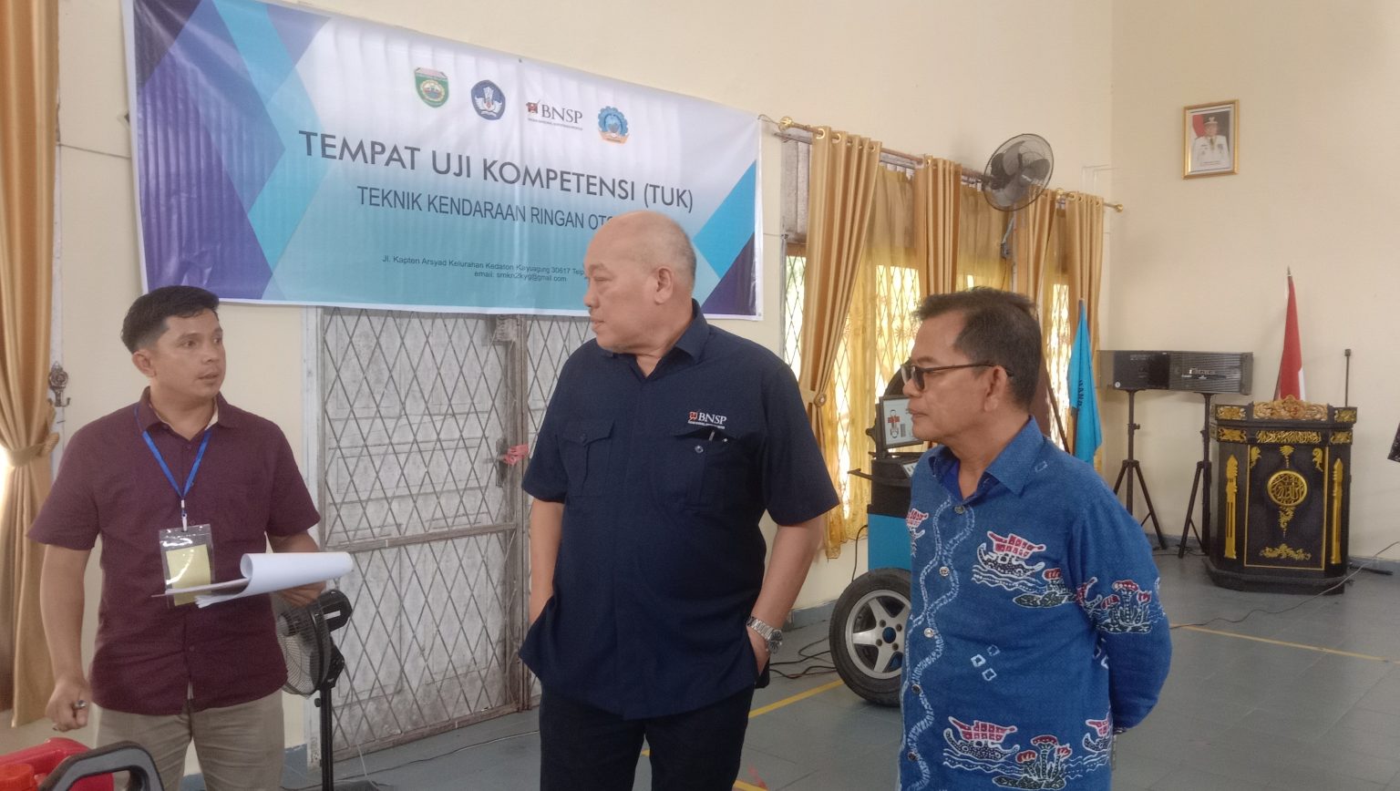 Diantara dokumen yang disiapkan materi uji kompetensi, lanjutnya, kelengkapan TUK (Tempat Uji Kompetensi), verifikasi TUK hingga penetapan TUK. Dan kunjungan kedua melihat langsung proses uji kompetensi yang pertama melalui Lembaga Sertifikasi Profesi (LSP).