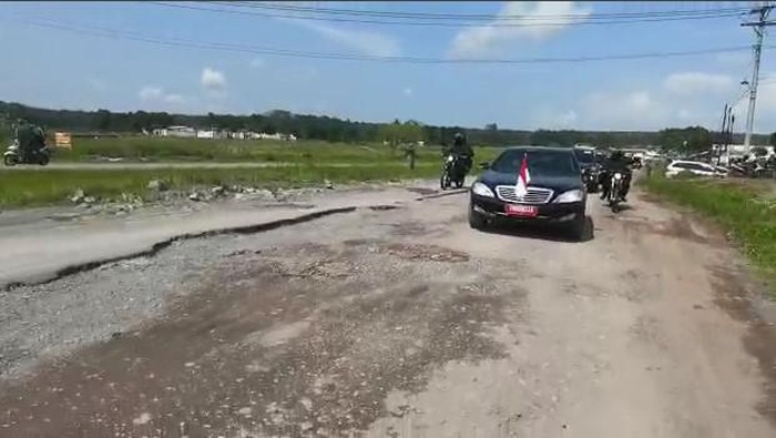 Jakarta – Presiden Joko Widodo (Jokowi) mengecek langsung jalan rusak di Lampung yang viral di media sosial. Naik mobil sedan berpelat ‘Indonesia 1’ Jokowi berkeliling Lampung melewati jalanan yang rusak.