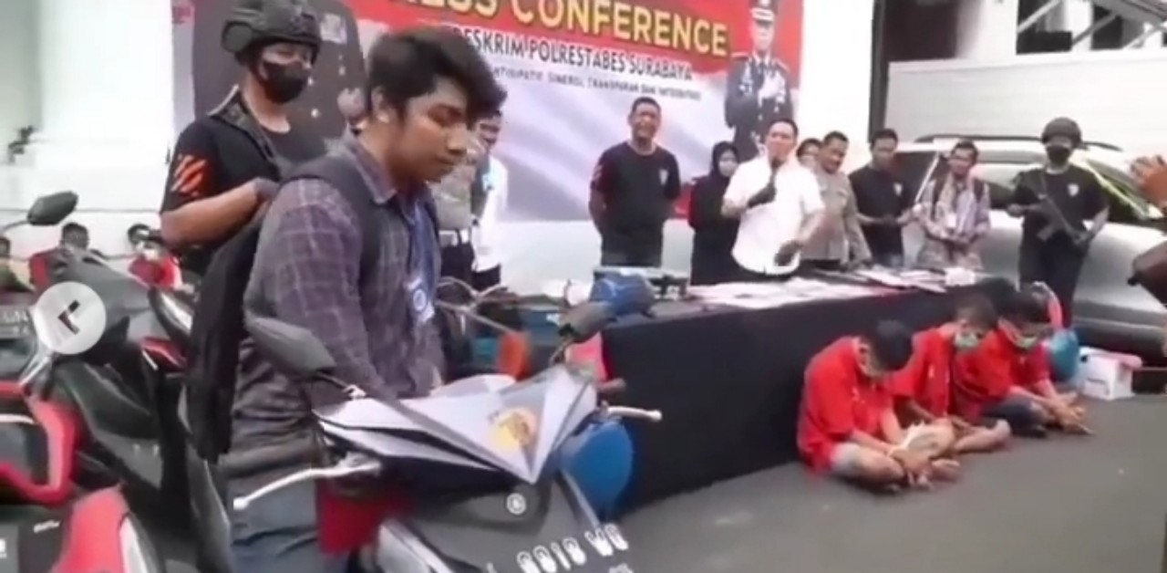 Dalam video itu, nampak Thoriq Alatas selaku korban ikut hadir di konferensi pers Polrestabes Surabaya terkait penangkapan pelaku pencurian motor milik mahasiswa ITS itu.