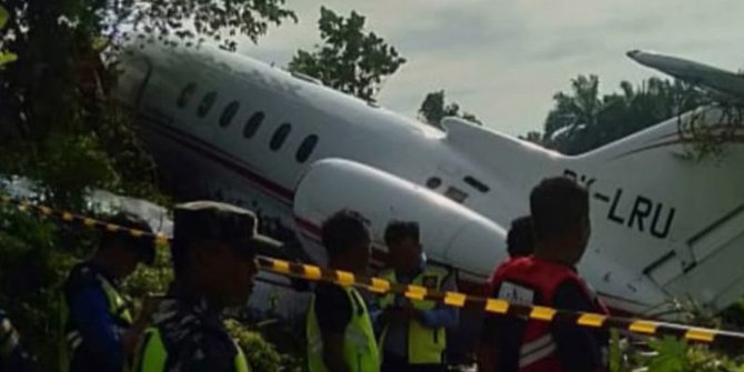 Merdeka.com – Pesawat jenis Hawker 900XP PK LRU tergelincir di Bandar Udara (Bandara) Maleo Kabupaten Morowali, Sulawesi Tengah (Sulteng). Pesawat ini mengangkut empat orang penumpang.