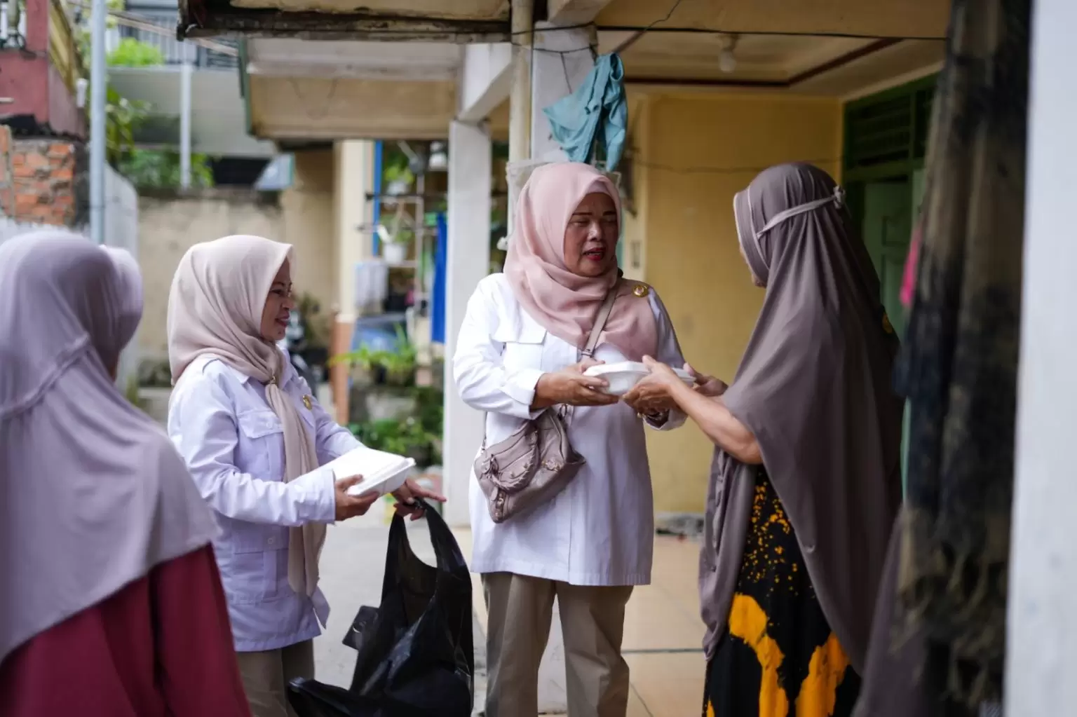 Riwi yang turut terjun langsung dalam aksi berbagi ini menjelaskan bahwa pembagian takzil yang dilakukan kali ini berupa nasi kotak.