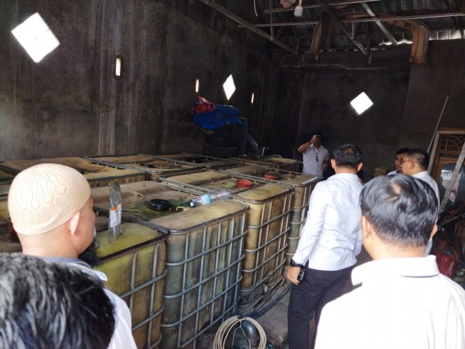 Dari hasil penggerebekan, lanjut Pandra, petugas mengamankan barang bukti 9 unit tandon kapasitas 1000 liter. 2 tandon dalam keadaan kosong dan 7 tandon dalam keadaan terisi minyak yang diduga telah diolah menyerupai BBM jenis Pertalite sekitar 7000 liter.