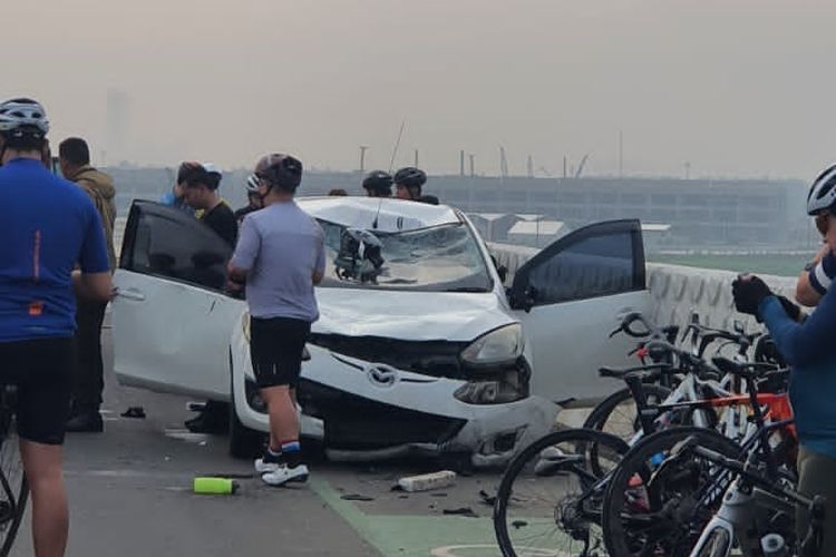 Insiden mobil menabrak pengendara sepeda itu terjadi tepat di Jalan Laksamana Yos Sudarso tepatnya Atas Jembatan Baruyungan PIK 2 Jakarta-Banten Kelurahan Dadap, Kecamatan Kosambi, Kabupaten Tangerang, Banten pada sekitar pukul 06.40 WIB, Minggu (16/10/2022).
