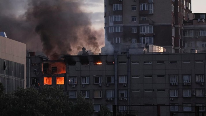 Sementara itu, laporan kehancuran Ukraina juga diberitakan di Mykolaiv, bagian selatan negara itu. Sebuah rudal benar-benar menghancurkan satu sayap sebuah bangunan di pusat kota.