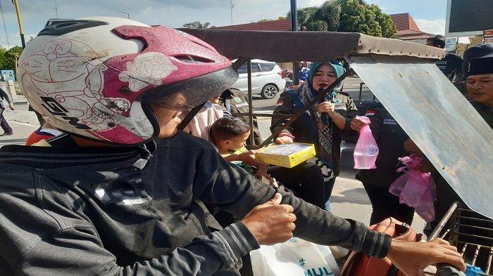 Tampak para pengendara semringah mendapat paket makanan dari para pewarta yang biasanya meliput kegiatan semacam ini.