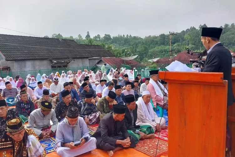 Tebing Tinggi, Ratusan warga Muhammadiyah, Desa Lingge, Pendopo Barat, Empat Lawang mengadakan shalat Idul Fitri di lapangan masjid Babussalam, Jumat (21/4/2023).