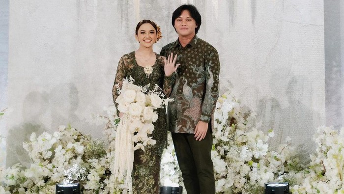Pada momen spesial itu, Rizky Febian dan Mahalini kompak mengenakan baju bernuansa hijau tua. Rizky Febian terlihat mengenakan batik dan Mahalini memakai kebaya.