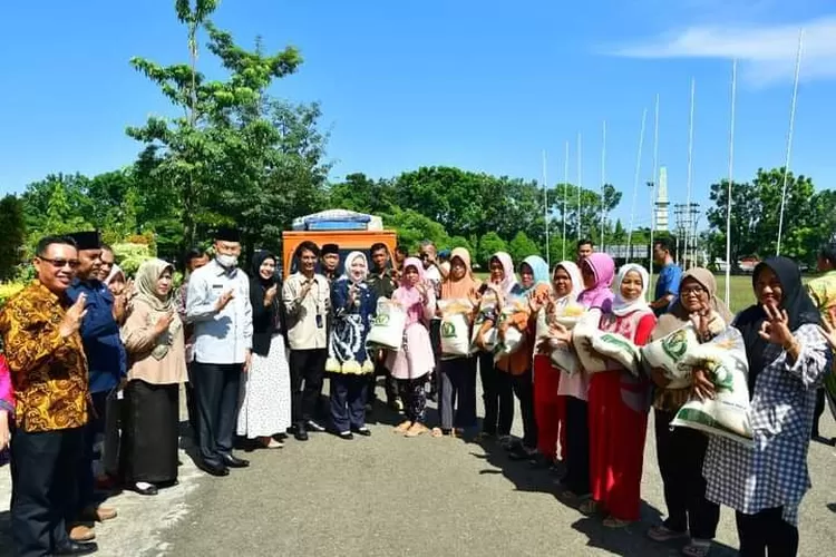 Muara Beliti, Bupati Musi Rawas Hj Ratna Machmud launching bantuan Pangan Beras Tahun 2023 di Kabupaten Musi Rawas.