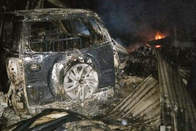 Selain mobil jenis Toyota Rush, sepeda motor dan barang berharga lainnya ikut hangus terbakar.