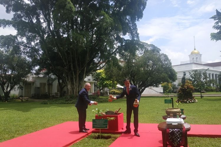 BOGOR, KOMPAS.com – Presiden Joko Widodo dan Perdana Menteri (PM) Palestina Mohammad IM Shtayyeh menanam Pohon Meranti di halaman belakang Istana Kepresidenan Bogor, Jawa Barat, pada Senin (24/10/2022) siang.