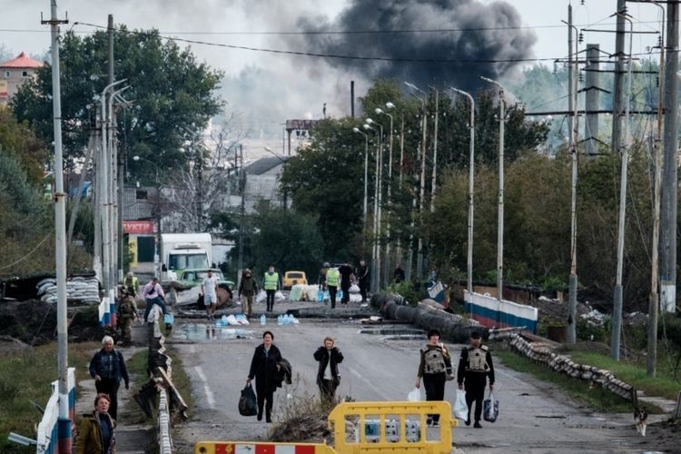 Di Kota Kupiansk di garis depan, suara gempuran dan kepulan asap muncul dari seberang Sungai Oskil, yang memisahkan wilayah tepi barat yang dikuasai Ukraina dan bagian timur yang disengketakan pasukan Rusia.