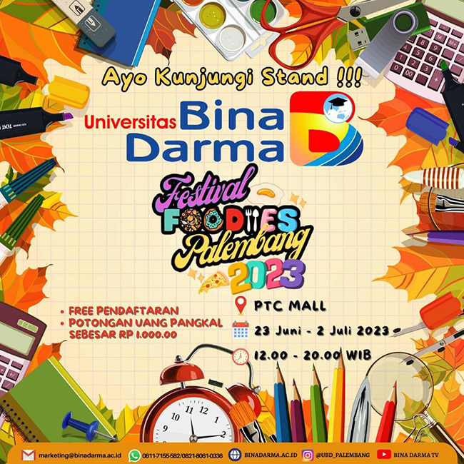 “Sebagai Sponsor, Universitas Bina Darma juga menggelar Open Stand pada FPP 2023, tepatnya di halaman parkir depan Ichiban Sushi PTC Mall,” ujar Rasmila, M.Kom. selalu Manajer Marketing UBD.