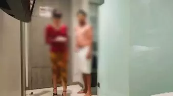 Lalu, keluarlah sorang pria berbadan gempal hanya memakai handuk. Menariknya, dia juga sudah memakai topeng serupa. Pria itu meminta si cewek menaruh asbak, sekaligus membersihkan lantai dan sempat bertanya soal umur.