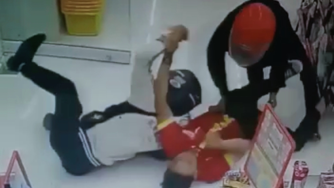 Dengan menggunakan tangan kosong, karyawan Alfamart sempat berduel dengan pelaku perampokan. Pelaku yang mengenakan helm dan tas rangsel masuk ke toko melalui pintu depan.