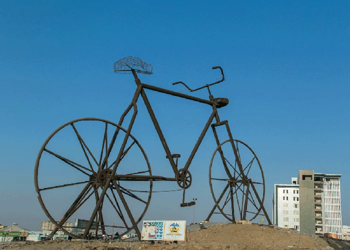 Untuk tinggi bangunan ini adalah 15 meter. Mahakarya itu dibawa oleh arsitek Spanyol Julio Lafuente dalam misi mempercantik Kota Jeddah di Saudi Arabia pada pertengahan 1970-an. Patung sepeda pun menjadi salah satu landmark paling terkenal di Jeddah.