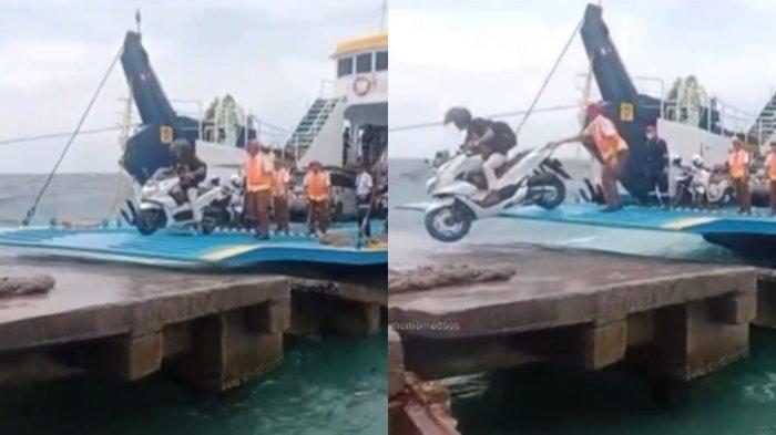 Dalam video yang diamati Tribun Medan, pengendara bermotor yang tengah mengeluarkan motornya dari kapal di Pelabuhan Tarebung, Sumenep, Jawa Timur.