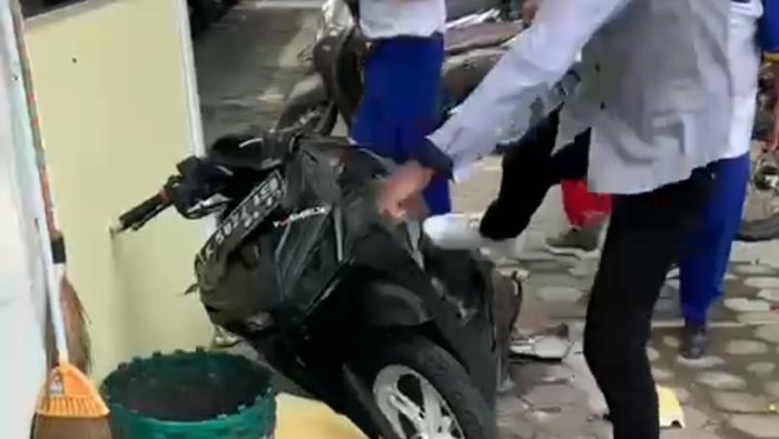 “Itu yang dirusak motor diduga pelaku pencurian helm di kampus, inisial F mahasiswa semester 2,” kata Sahlan kepada detikJateng lewat pesan singkat.