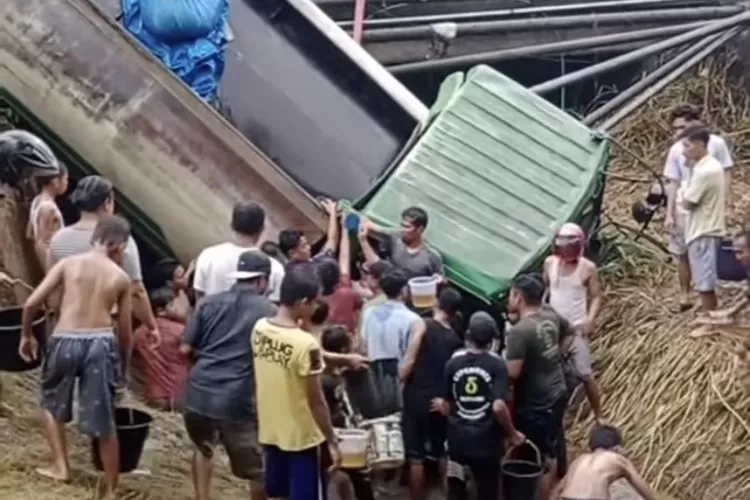 AYOJAKARTA.COM – Viral sebuah video yang memperlihatkan warga yang berebut minyak goreng dari truk yang terjungkal.