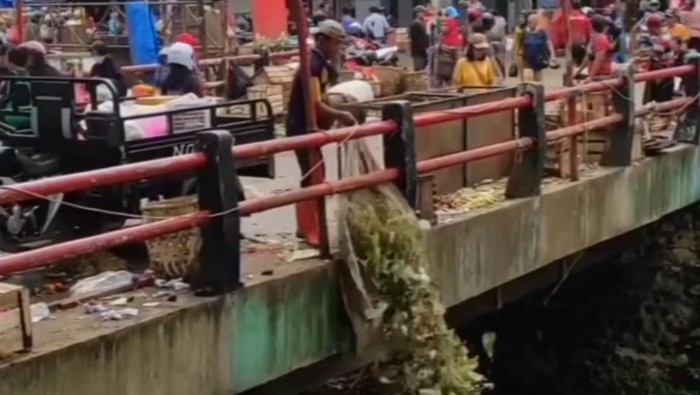 Jakarta – Sebuah video menampilkan seseorang membuang sampah di sungai dekat Pasar Cibinong, Kabupaten Bogor, Jawa Barat, viral di media sosial (medsos). Pria tersebut membawa karung yang berisi penuh sampah lalu membuangnya ke sungai.