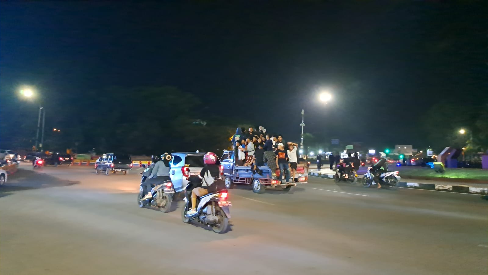 Palembang, Malam Hari Raya Idulfitri 2023, umat muslim di Kota Palembang menggelar takbiran keliling di sepanjang jalan protokol.