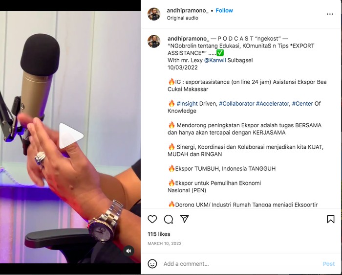 Perlu diketahui bahwa sebelumnya sebuah unggahan berisi foto Andhi saat menghadiri sebuah acara podcast beredar di media sosial (medsos) Twitter. Dikutip dari akun Twitter @BosPurwa, Andhi saat itu diduga memakai jam tangan mewah merek Rolex dan cincin blue safir.