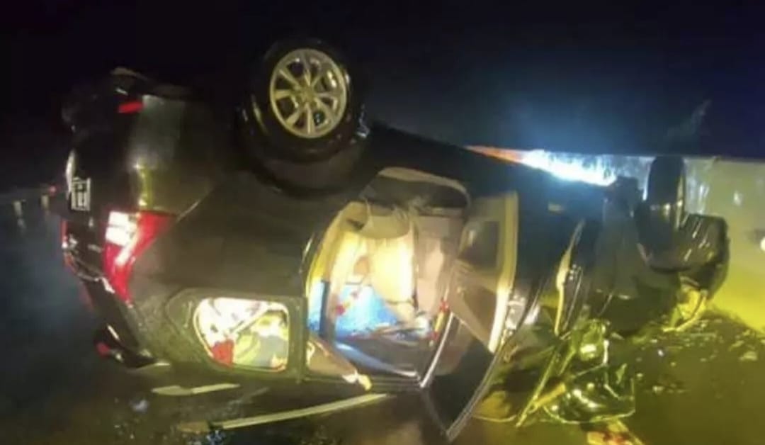 Setibanya di lokasi kejadian, pengemudi membanting setir sebelah kanan, sehingga menabrak barrier beton tengah dan terguling dengan posisi empat roda menghadap ke atas.
