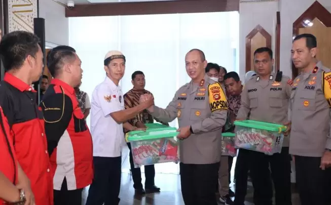 Palembang, Sumselupdate.com – Jelang memperingati Hari Buruh Sedunia, Polda Sumsel salurkan 2.000 paket sembako terhadap perwakilan sejumlah organisasi buruh yang ada di Sumatera Selatan, Jumat (28/04).