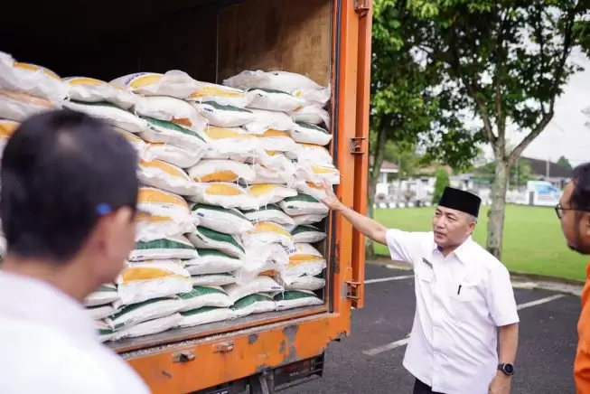 Sekayu, sumselupdate.com – Pj Bupati Muba Apriyadi Mahmud menyalurkan sebanyak 390 ton beras cadangan Pemerintah kepada 39 ribu warga pra sejahtera di Bumi Serasan Sekate.