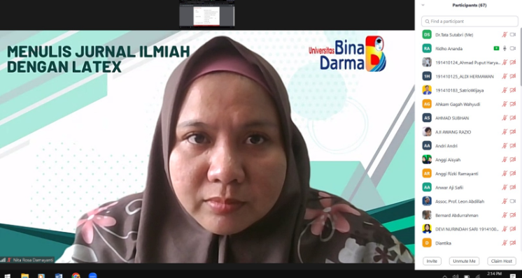 PALEMBANG, SUMEKS.CO – Meningkatkan kemampuan para dosen, Universitas Bina Darma (UBD) Palembang mengadakan pelatihan menulis jurnal dengan Latex secara daring via Zoom Meeting, Rabu 2 Agustus 2023.