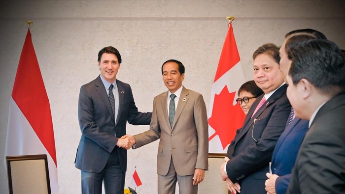 Jakarta – Presiden Joko Widodo (Jokowi) melakukan pertemuan bilateral dengan Perdana Menteri (PM) Kanada Justin Trudeau pada Sabtu (20/5) di Hotel Rihga Royal, Hiroshima, Jepang. Jokowi meminta dukungan Trudeau terkait perjanjian kerja sama ekonomi kedua negara.