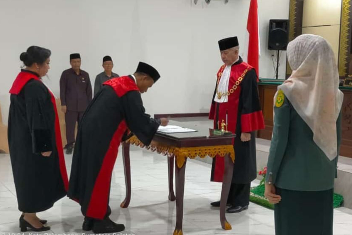 Pelantikan Ketua Pengadilan Negeri Kayuagung, Guntoro Eka Sekti SH MH ini dilaksanakan di Pengadilan Tinggi Palembang, Rabu 3 Januari 2024.